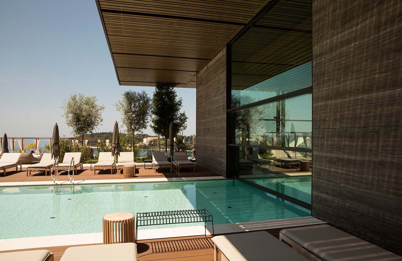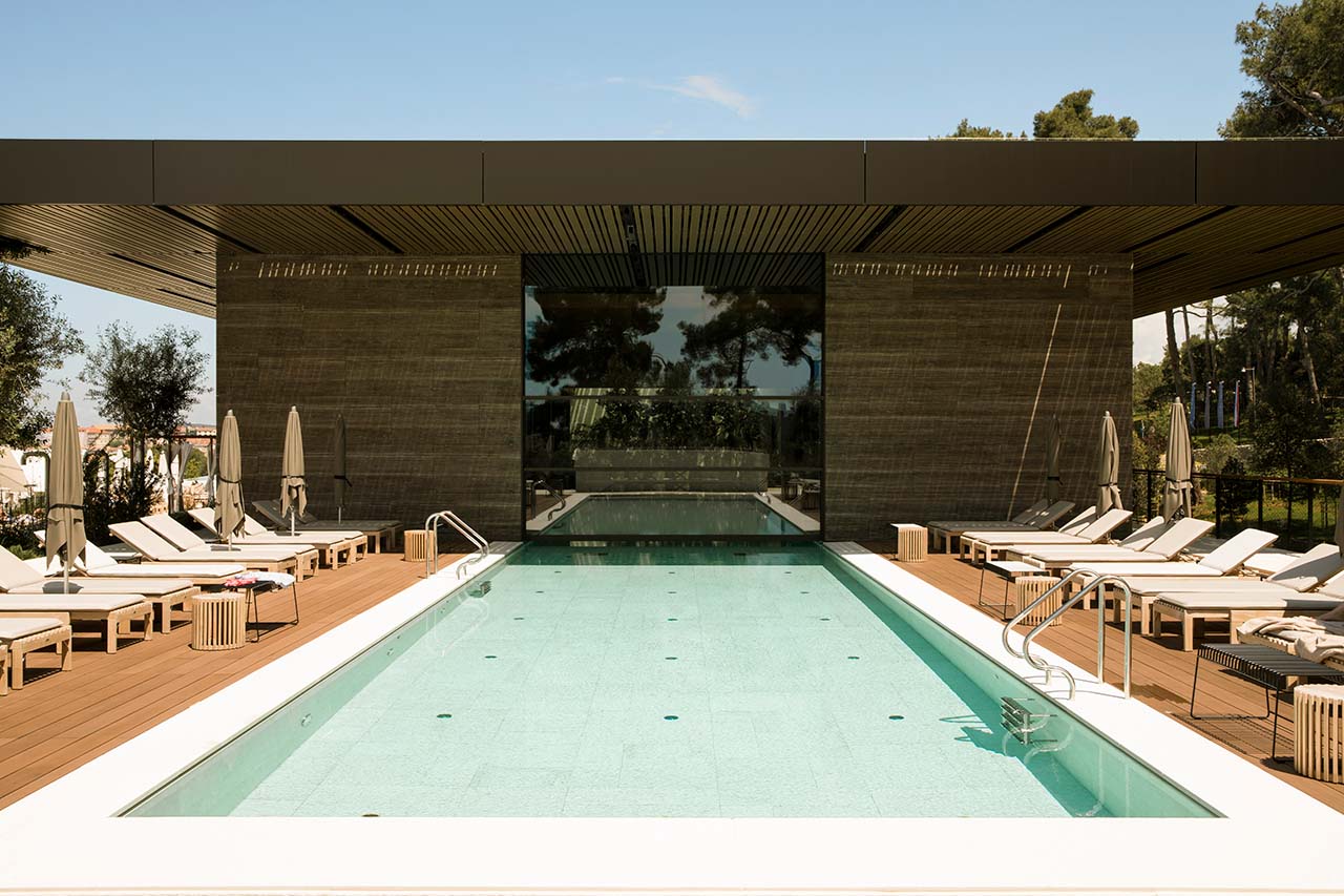 克罗地亚罗维尼大公园酒店安装了多套VITROCSA Guillotine系统,其中一套尺寸为 4.8m * 5.5m,位于游泳池上方。